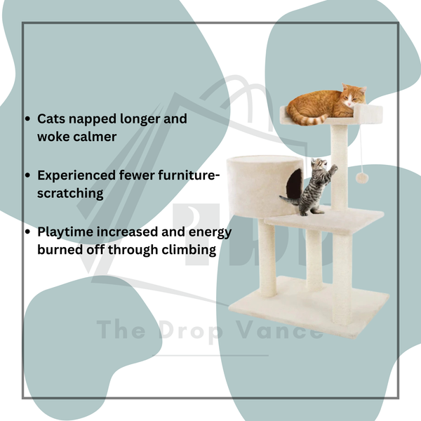 Try the Cozy Climb Cat Tower risk-free for 30 days. If it doesn’t reduce furniture scratching, increase activity, or give your cat better naps, return it for a full refund. We want you and your cat to feel confident and satisfied with this all-in-one cat tree purchase.
